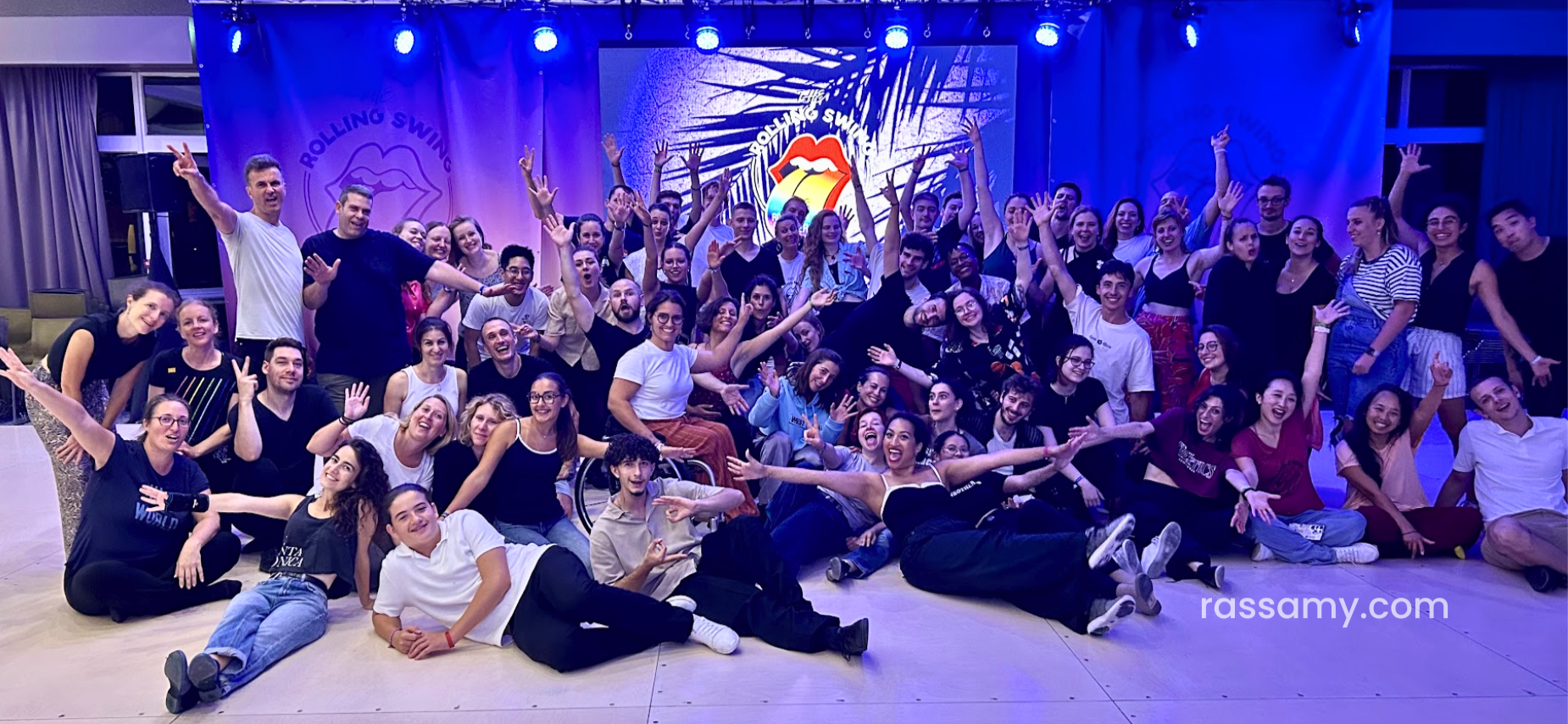 With a taste of the local West Coast Swing (WCS) community last night in Lyon, I was ready to… roll in’…to my first European WCS weekend event. I wasn’t sure what to expect, but Rolling Swing proved to be mighty when it came to community vibes, bilingual teaching, and party atmosphere.